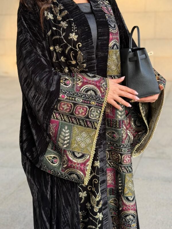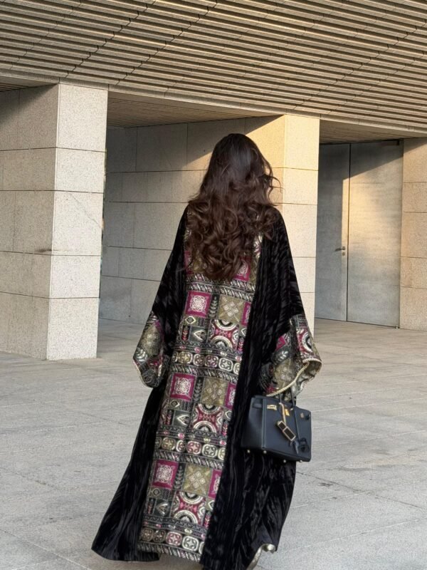 Free size, two-piece set including the inner dress.Embroidered, beaded, and lined velvet fabric.Model height is 163 cm, wearing length 54 inches.