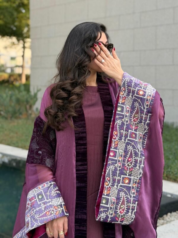 Embroidered and beaded velvet