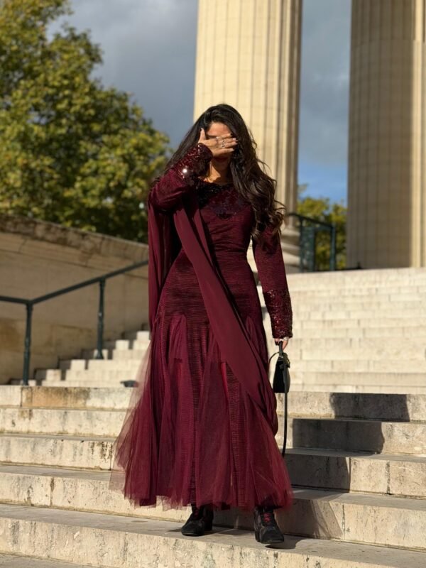 Burgundy Draped Kaftan