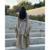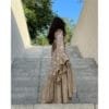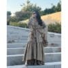 Free size with a belt. You can choose the desired length — the back and the front, with the front being slightly shorter
