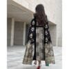 The fabric is embroidered, beaded, and lined Indian linenThe pattern details vary from one piece to another