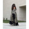Free size with an inner belt. The length includes the fringe, and the fabric is fully embroidered and beaded