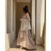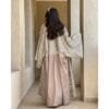 The bisht is embroidered and beaded, and comes with a dress and a belt.You can choose the length of the bisht, and the dress will be two inches shorter.Free size.